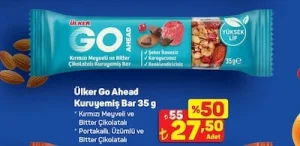 2 Nisan – 15 Mayıs A101’de Ülker Go Ahead Kırmızı Meyveli ve Bitter Çikolatalı Kuruyemiş Bar 35 gr